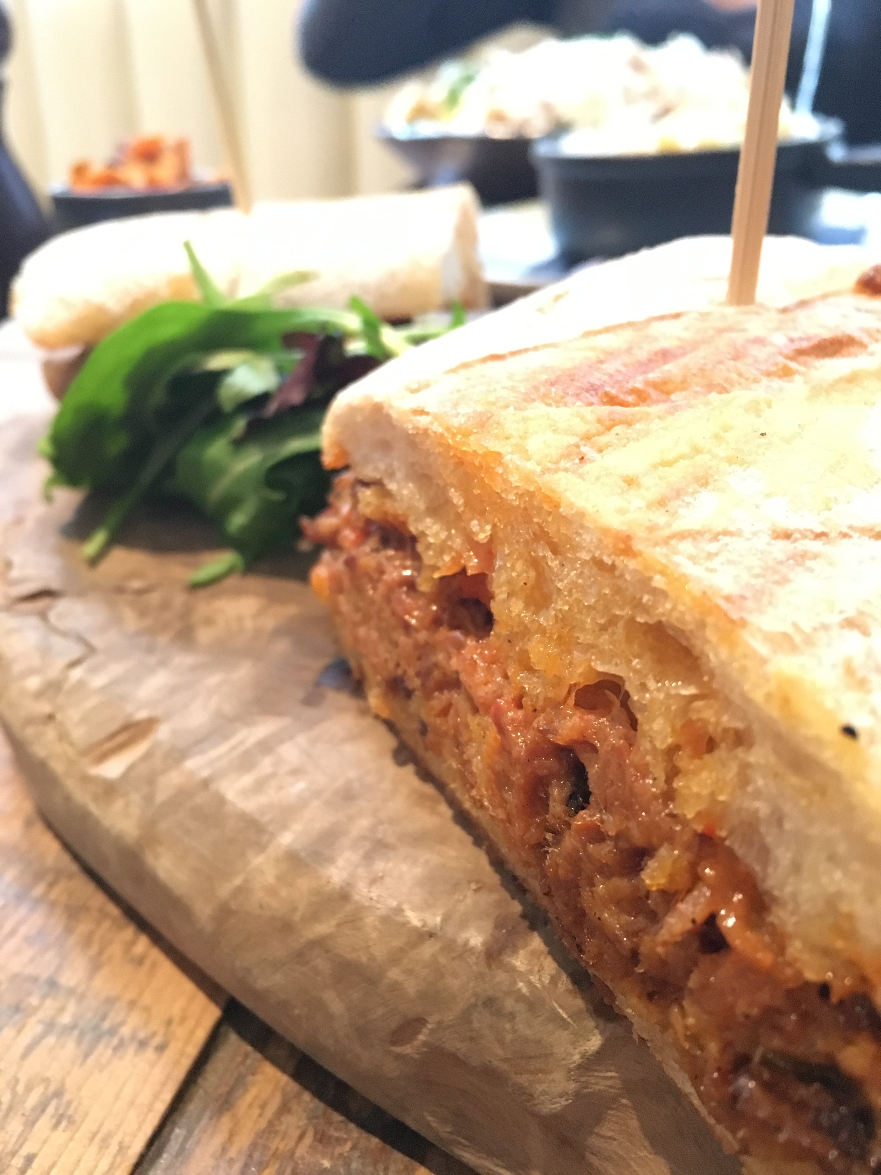 We stopped for lunch at a place called Mews of Mayfair. It was in a hidden alley with a ton of cute restaurants, all owned by the same guy. The décor was elegant and sleek, and the prices definitely reflected that as well. It was worth it though as the food was fantastic. I got a pulled pork sandwich, random thing to get in London, but it was an “upscale” version on ciabatta bread and spiced with their secret concoction. We enjoyed very expensive water while admiring the atmosphere. I have to say the food in London was pretty good despite its reputation.