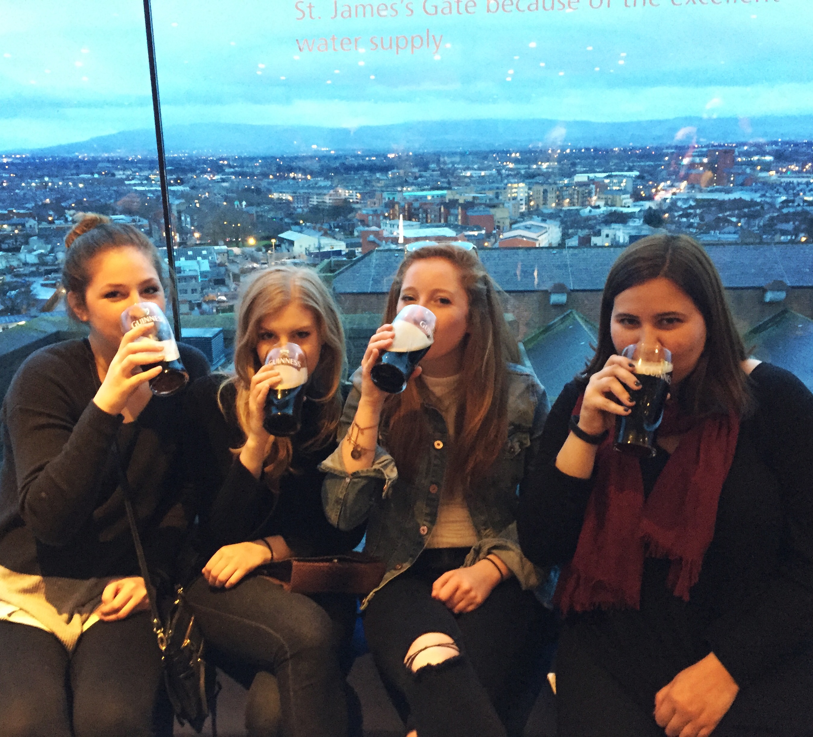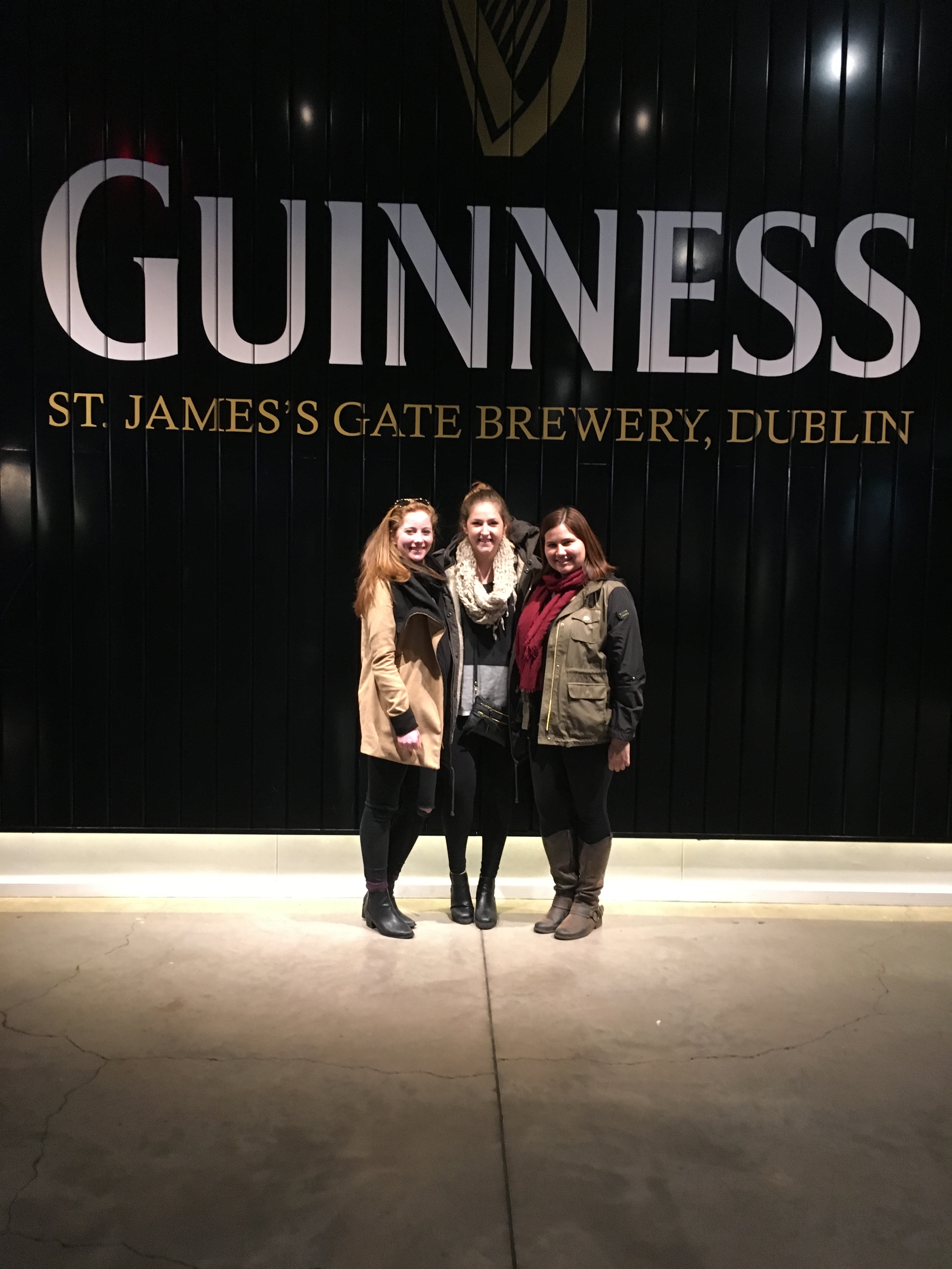 After having a cheesy reunion in the Rathmines and running into hugs with my friends, we got settled and made our way to a pub. It was nice to catch up on all things Europe, and get to know Liz’s friend from her program, Zoe, who also joined us for the weekend. The next step was naturally the Guinness factory, and wow was that an extensive tour. I’m no beer fan, but even I was appreciative of all the detail and time it takes to get into each cup. We found our way to the top of the store where you could get a free pint of Guinness (included in your ticket) and lookout over all of Dublin. Many attempts later we finally got some good pictures, and went on to our next location The Brazen Head, Ireland’s oldest pub. We enjoyed the rustic charm over dinner and made plans for the rest of the weekend. Another early day was ahead, so post dinner we passed out.