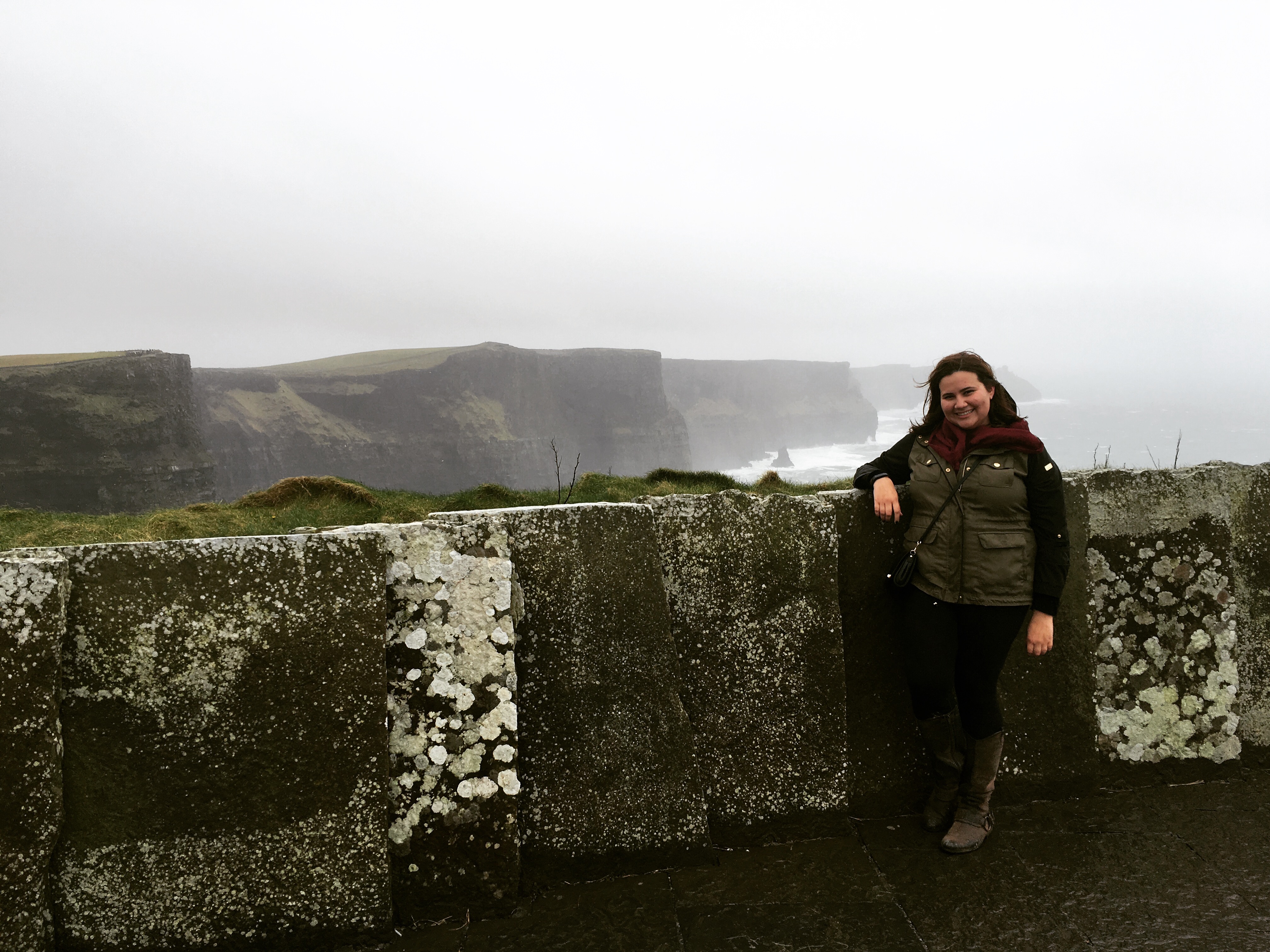 Waking up was hard yet again, but worth it as we nearly sprinted to make our Paddy Wagon tour. The end destination was the Cliffs of Moher, but we made a few stops in each direction. Most of the trip was spent sleeping on the bus, but when we did make stops we were given a taste of Ireland. The first was at a little café near a castle an hour out of Dublin for breakfast, and then we went straight to the Cliffs. I was absolutely blown away, literally. The wind speed was so strong that I was either pushing through the current to move forward or being forced to run down the hill. The view was gorgeous though, and we got to spend an hour walking around taking in the sights. I’ve always wanted to see the Cliffs, and it was well worth the wait.